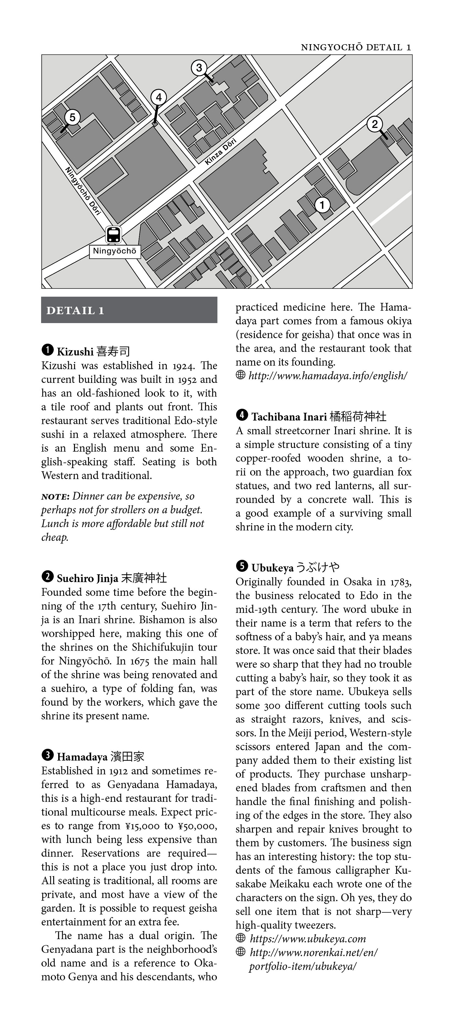 Below is an excerpt from Tokyo Stroll’s chapter on Ningyōchō, literally “doll town,” a neighborhood historically associated with performing arts such as kabuki and, of course, bunraku puppet theater, but equally with its sophisticated ryōtei dining.